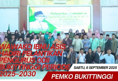 Bukittinggi, newshanter.com – Wakil Walikota Bukittinggi hadiri pelantikan pengurus Dewan Dakwah Islamiyyah Indonesia (DDII) se-Kota Bukittinggi periode 2025–2030. Kegiatan ini berlangsung di Aula Balai Kota, Sabtu, (6/9/2025).