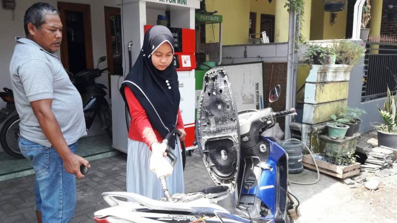 Brebes – Widia (25), warga Dukuh Krajan Timur RT. 01 RW. 04, Desa Kalinusu, Kecamatan Bumiayu, Kabupaten Brebes, Jawa Tengah, adalah salah satu pemilik Pertamini di desanya, yang mulai meraup berkah terkait adanya pembangunan infrastruktur melalui TMMD Reguler 109 Kodim 0713 Brebes.