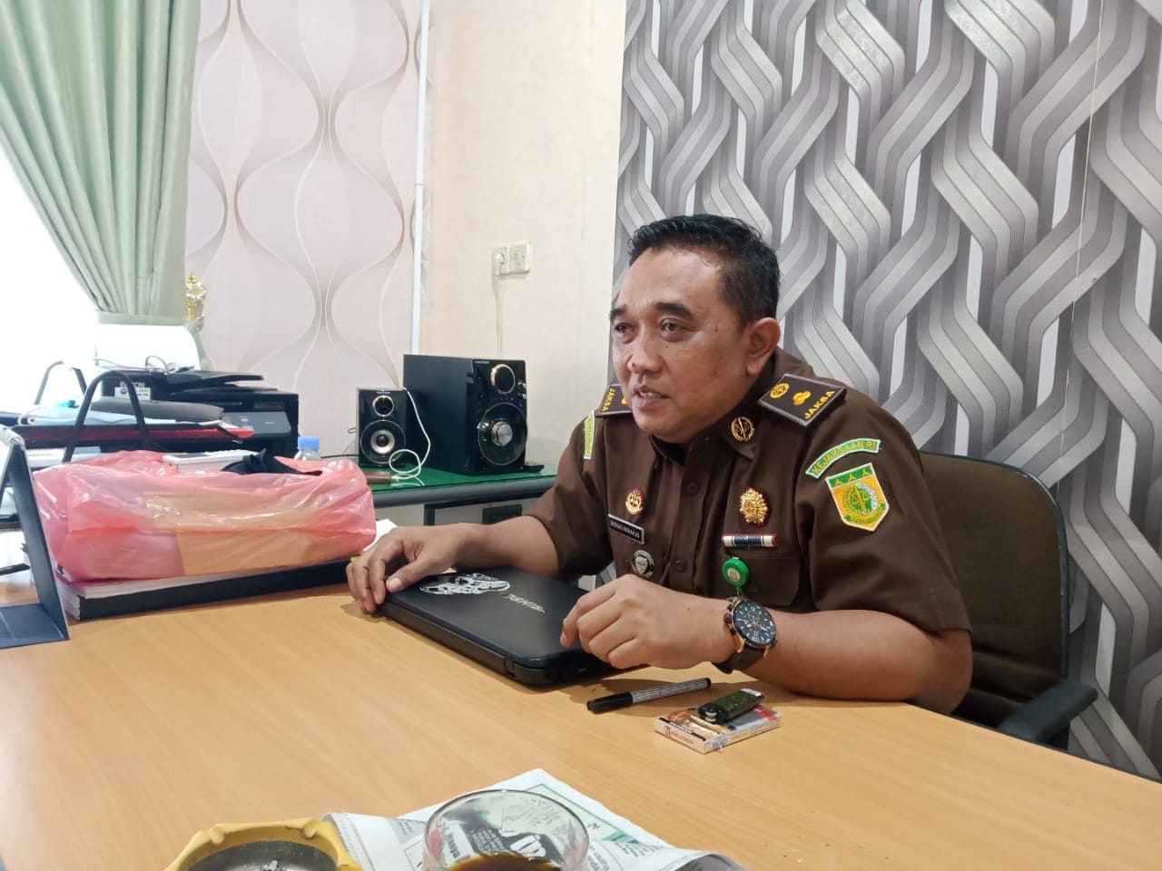“Iya pengaduan itu sudah diterima dan ditindak lanjuti oleh pimpinan ke bidang Intel selanjutnya dikaji. Sebelumnya setahu Kemarin aduan itu masih di meja pimpinan namun saat ini sudah turun ke bidang Intel jadi Intel yang akan menangani nya, “ terang Basuki saat ditemui wartawan di ruang kerjanya.(10/9/20).